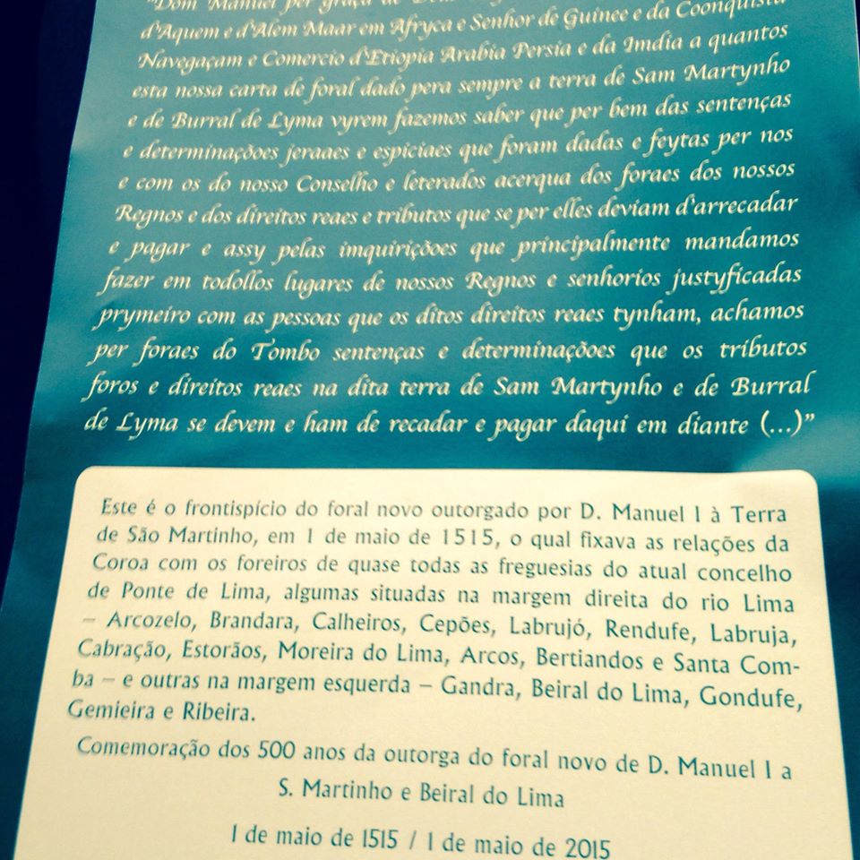 COMEMORAÇÕES DOS 500 ANOS DA ATRIBUIÇÃO DO FORAL DE SÃO MARTINHO